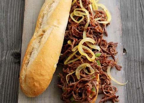 Cooked very slowly in a low oven with Tomatoes, Barbecue Sauce, Honey, Worcestershire Sauce, Stock and Smoked Paprika. The tender meat is 'pulled', before it is shredded to serve.
