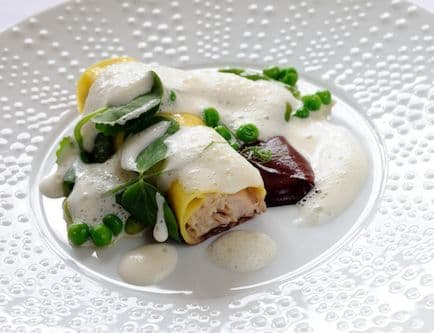 This elegant Rabbit dish actually contains some fairly robust flavours, with a Black Pudding Purée and Ham Velouté served with the Rabbit filling for the Cannelloni. .