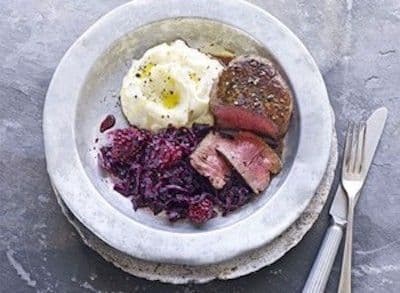 Red Cabbage dotted with Berries perfectly cuts through Game Meat - serve with buttery mashed Potatoes