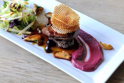 This Mark Dodson Wood Pigeon recipe is a modern British classic. Breast of Wood Pigeon is topped with a Potato Crisp and drizzled with a Blueberry Jus and Beetroot Purée - a dish which looks just as good as it tastes.