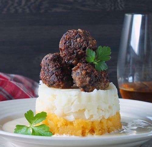 A modern take on a classic Burns Night Supper - Lamb Mince and Haggis Meatballs with a delicious and simple Whisky Cream Sauce. Serve with Tatties and Neeps.