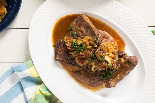 The sliced Liver is marinated in the Moroccan Spices of Cumin and Paprika and then cooked with a generous quantity of fried or caramelized Onions. Serve on a bed of Mashed Potatoes