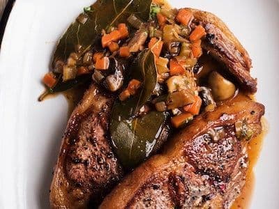 Cooking for two? Then this is the recipe for you! Rub with some chopped herbs, Garlic, Salt, Pepper, and Olive oil - sear on a high heat, rest a few minutes, and serve