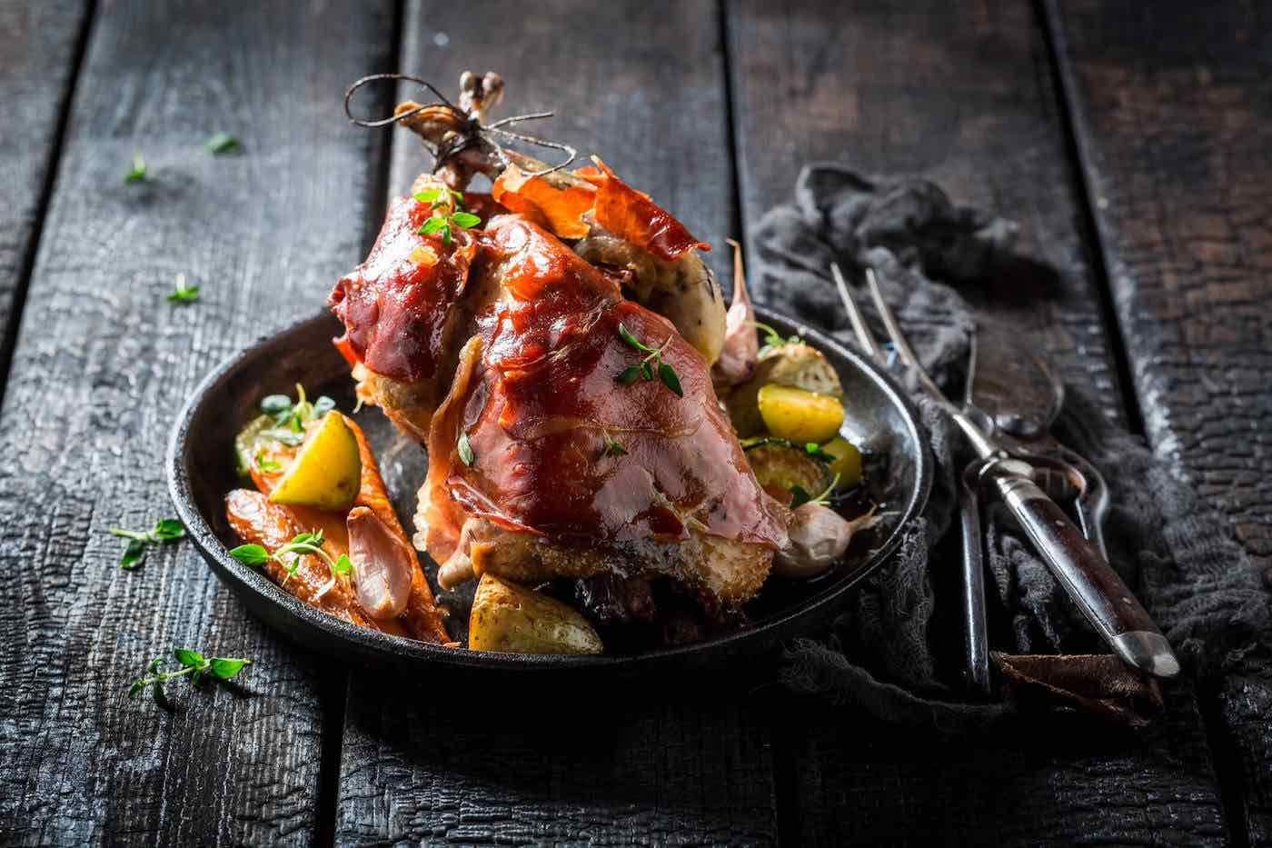 This recipe is a wonderful starter for a dinner party or family feast. Piping Herb Butter beneath the skin is fiddly but ensures richly-flavoured, tender meat, and crispy skin