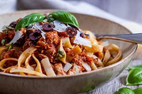 A classic Italian Tomato and Herb Sauce slow cooked with Chicken and Olives.