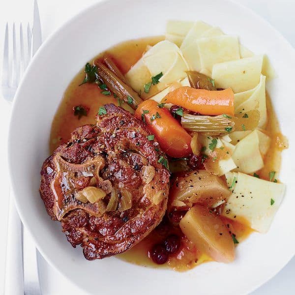 Lamb Necks, an underappreciated Cut, are fantastic when braised, such as in this homey Stew from Boston chef Tony Maws. The Meat gets succulent and tender as it cooks in the slightly sweet braising liquid flavoured with White Wine and fresh Herbs, while the Neck Bones, in turn, intensify and flavour the broth.
