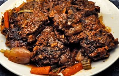 These are made similar to Osso Bucco - the long, slow cooking needed for tender Meat. Its worth it.