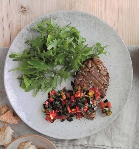 Perfect Lamb Henry Steaks with the Tapenade spooned over - and served with crusty Bread and a Green Salad