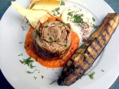 Lamb Leg Steaks seasoned, grilled and served with tasty combination of pan-fried Onions, Tomatoes, Garlic and Cauliflower Florets garnished with Pine Nuts, Parsley and natural Yogurt.