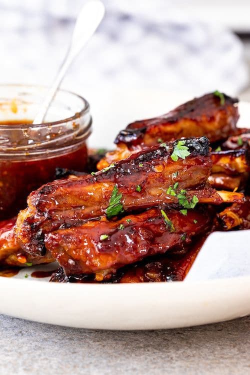Baked Lamb Ribs in a sticky, Asian-inspired glaze is a delicious dinner or easy snack recipe. The glaze is super sticky making the Ribs irresistible.