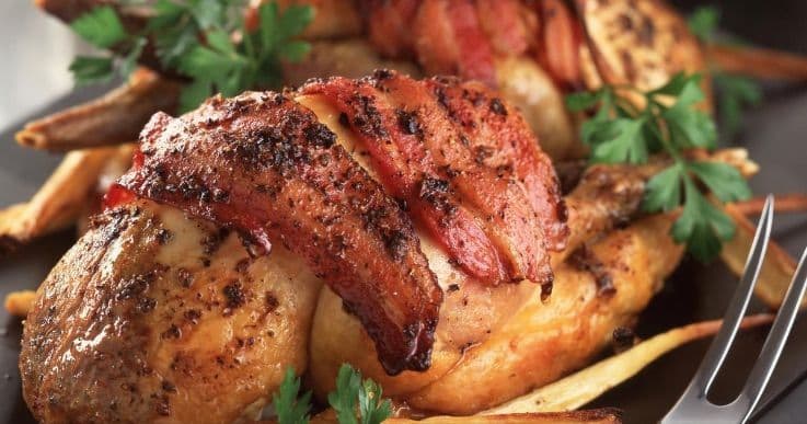 Preparation time 25 mins : Cooking time 1hr 55 mins. Click here for Guinea Fowl, Partridge, Otter Valley Special Reserve Chicken, Church Hill Farm Chicken, Otter Valley Organic Chicken, Tamworth Smoked Streaky Bacon, Fresh Chicken Stock